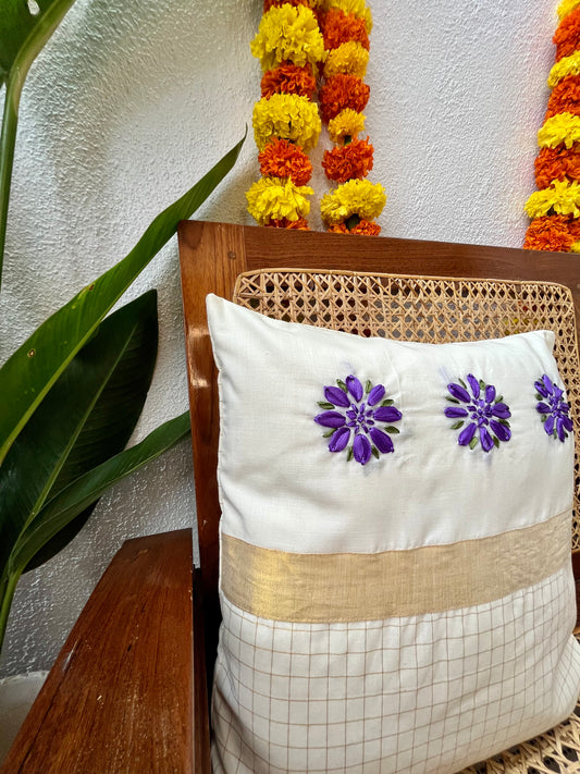 Cushion Cover - Pookkalam (Hand Embroidered)