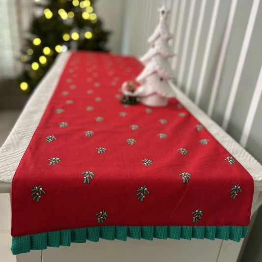 Runner Scalloped with Holly Embroidery