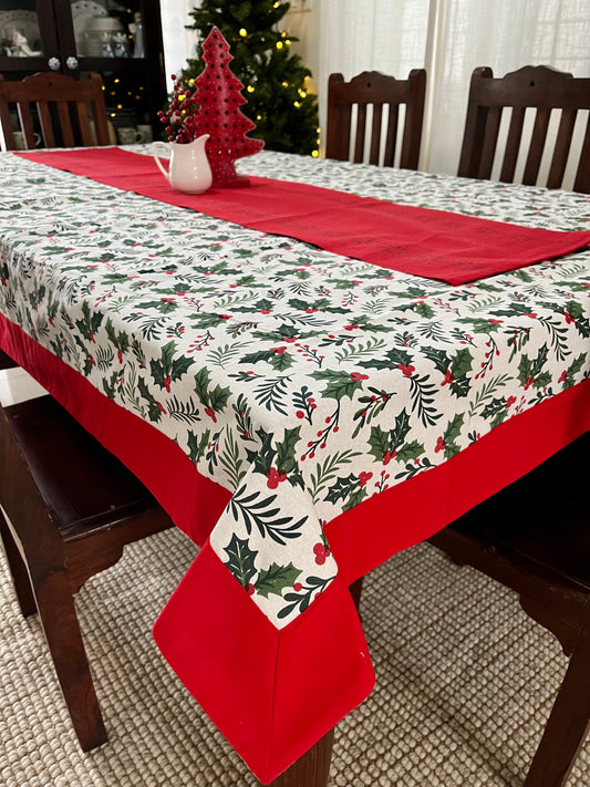 Christmas Tablecloth - Hollies & Pine Leaves
