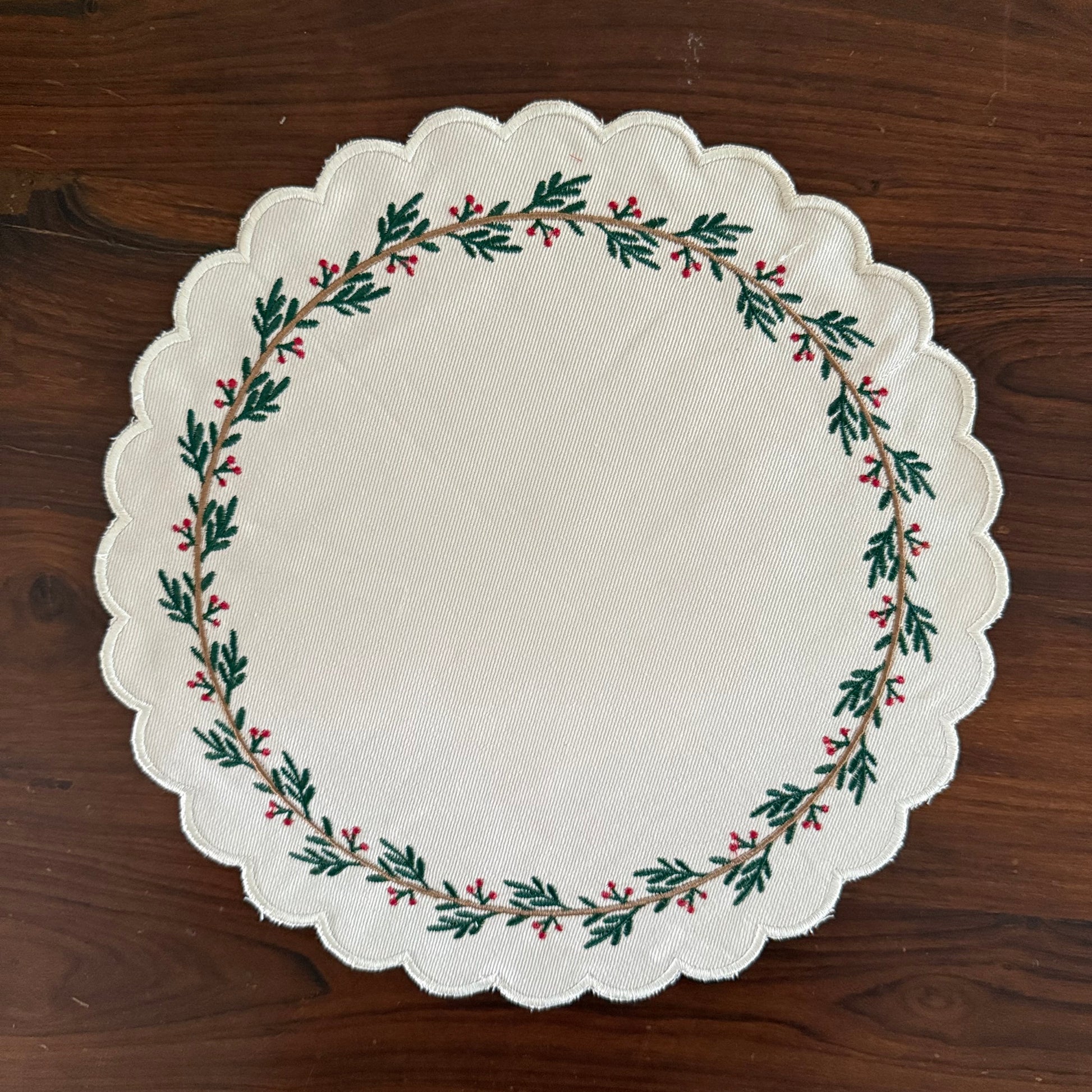 Christmas Placemat - Scalloped in Holly (Round)