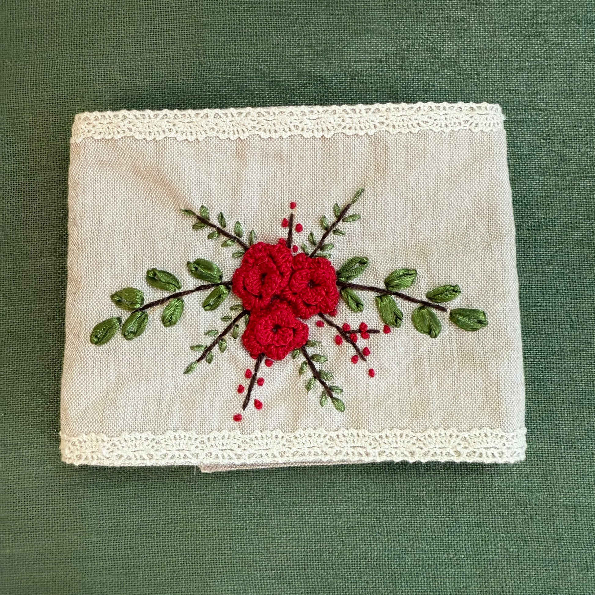 - Description- Curtain Tie backs handmade with hand crafted Crochet Flowers Ribbon embroidery in Beige Cotton fabric. Matching Crochet lace on either side. Fastening with Velcro with size adjustable extra band.